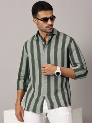 Greens that grow on you. This moss green slim fit shirt from Regalwolf features subtle stripes on a normal dobby cotton base. The refined texture and earthy tone deliver quiet luxury—easy to wear, easy to remember.